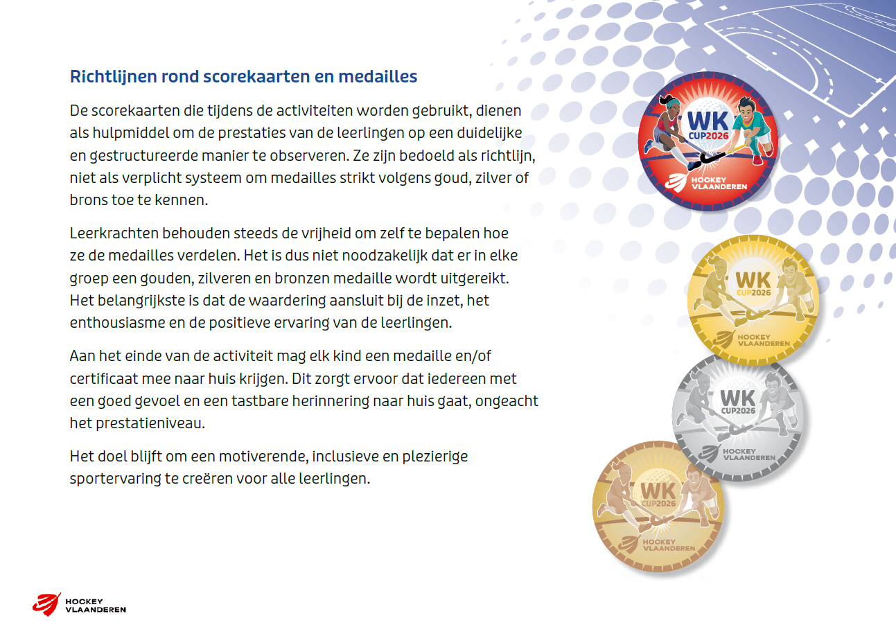 In aanloop naar het WK Hockey roepen MOEV en Hockey Vlaanderen alle scholen op, om mee te doen aan de WK Hockey2School Cup. Deze sportieve hockey challenges op school en hockeytornooien op een echt hockeyveld maken de WK-droom tastbaar voor alle jongeren in Vlaanderen en Brussel.